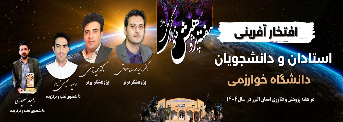 به گزارش روابط عمومی دانشگاه خوارزمی در اختتامیه هفته پژوهش سال جاری که ۱۸ آذرماه ۱۴۰۴ با شعار «سرمایهگذاری در تولید با پشتوانه پژوهش و فناوری» برگزار شد، چهار عضو دانشگاه خوارزمی در فهرست پژوهشگران و دانشجویان برتر استان البرز قرار گرفتند.